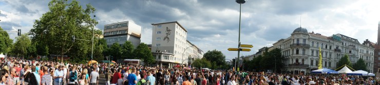 Whistles, techno, samba, hiphop, punkrock you name it, you heard everything whilst walking behind other people as if you were a big herd of happy zombies enjoying the awesome weather and good company. Since I’ve been here in Berlin I haven’t seen a gathering of people so large except at Brandenburger tor during the Einheitsfest, but even there people weren’t filling the streets in such lengths as they did this weekend in Kreuzberg.